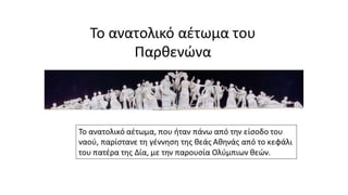 Η ζωφόρος τουΠαρθενώνα καλύπτει και τις τέσσερις πλευρές του σηκού του ναού! Σε αυτήν απεικονίζεται "εν