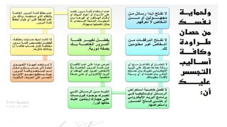 يتناول الوثيقة موضوع أمان المعلومات والمخاطر الإلكترونية المختلفة، بما في ذلك البرمجيات الضارة مثل الفيروسات وأحصنة طروادة. كما تشير إلى أهمية حماية المعلومات من التهديدات وتأمينها أمنيًا للحفاظ على سريتها وسلامتها. وتوضح كيفية تأثير التكنولوجيا على المعلومات الشخصية وضرورة التعامل الحذر مع الأجهزة المحمولة.
