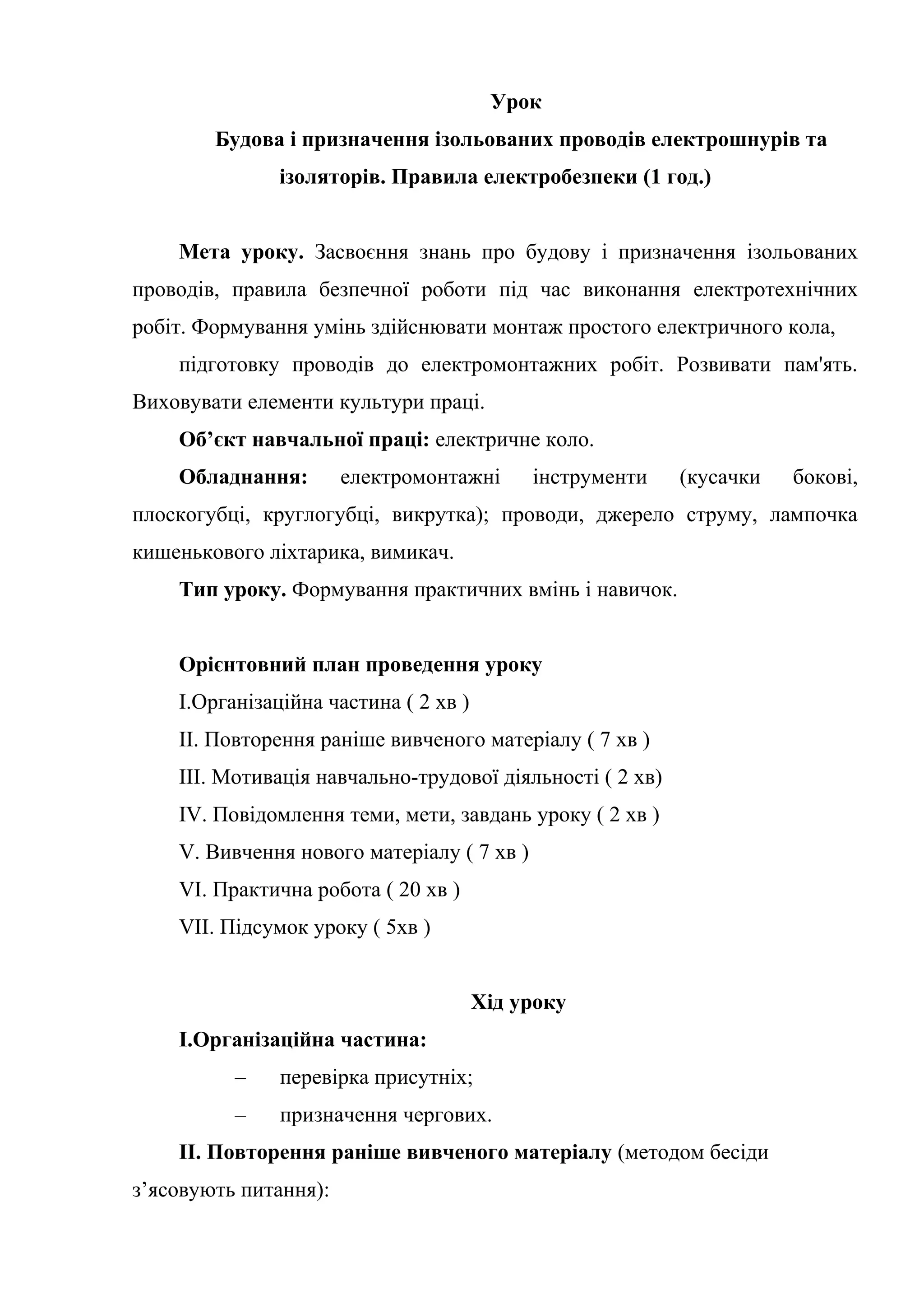 проводів, правила безпечної роботи під час виконання електротехнічних