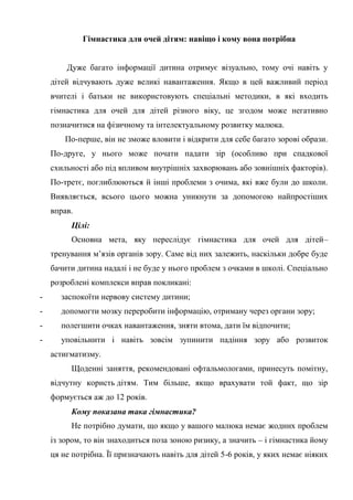 Основна мета, яку переслідує гімнастика для очей для дітей–