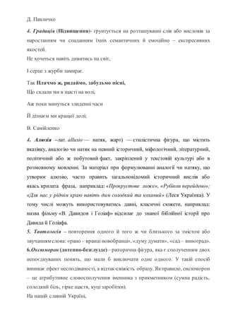 4. Градація(Підвищення)- ґрунтується на розташуванні слів або висловів за