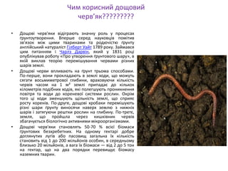 росту коренів. По-друге, дощові хробаки перемішують