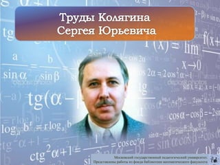 Выставка в Московском государственном педагогическом университете посвящена трудам профессора Сергея Юрьевича Колягина, включающим научные статьи и учебные пособия по математическому анализу и теории чисел. Она содержит биографическую справку, учебные материалы и статьи из научных сборников, освещая достижения Колягина за период с 1998 по 2016 год. Выставка интересна для студентов педагогических вузов, обучающихся в области естественных наук.