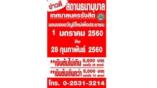 ๕,๐๐๐ คิดดอกเบี้ยรอยละ ๐.๕๐ บาทตอเดือน เงินรับจํานํา ๕,๐๐๐- ๑๐๐,๐๐๐ คิดดอกเบี้ยรอยละ ๑.๐๐ บาทตอเดือน การคิดดอกเบี้ย ไมเกิน ๑๕ วัน คิดดอกเบี้ย ครึ่งเดือน เกินกวา ๑๕ วันคิดดอกเบี้ย เต็มเดือน ตั๋วหนึ่งใบรับจํานําไมเกินวงเงิน ๑๐๐,๐๐๐- บาทตอตั๋วหนึ่งใบ วงเงินรายละไมเกิน ๕๐๐,๐๐๐- บาทตอราย ตั๋วจํานํามีอายุ ๔ เดือน ผอนผัน ๓๐ วัน