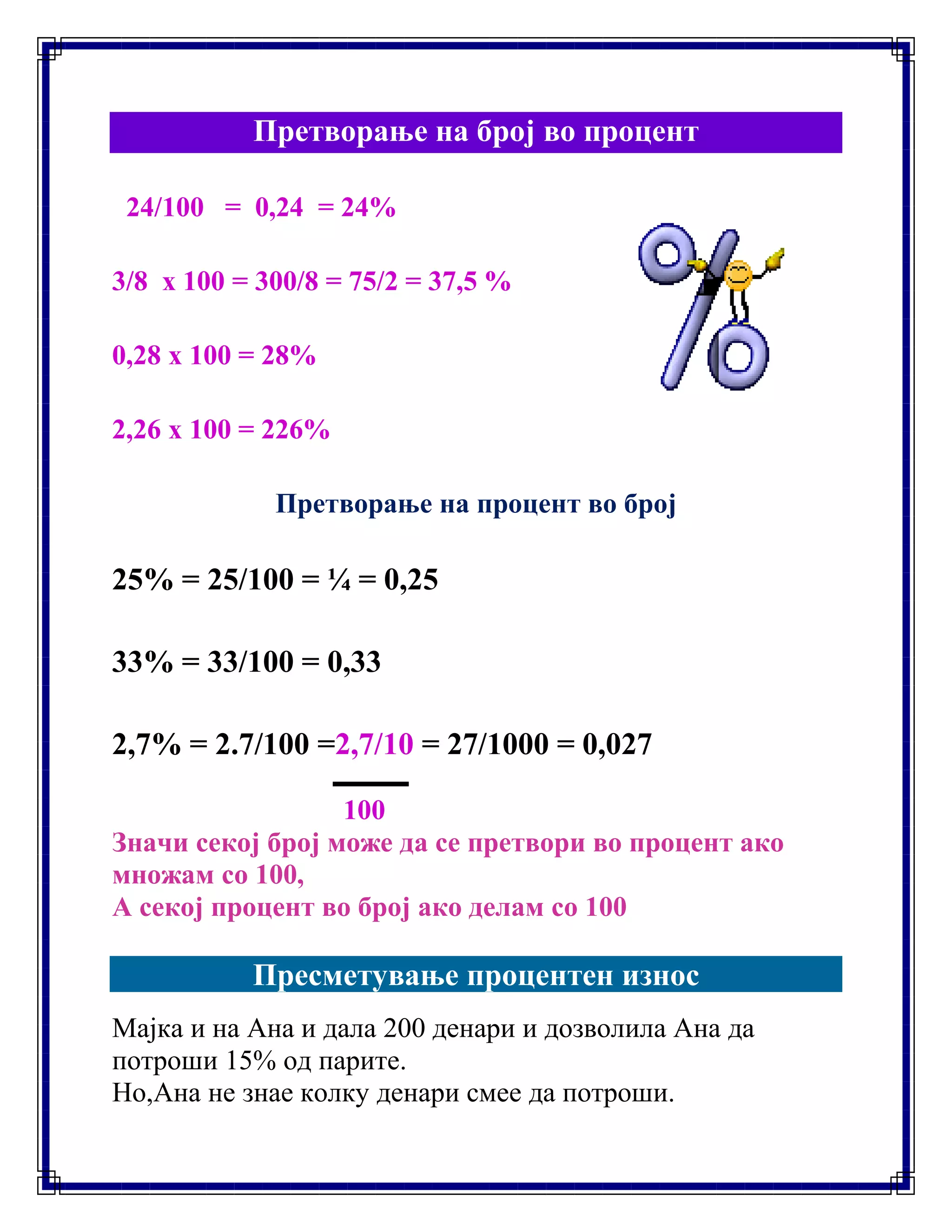 Претворање на процент во број