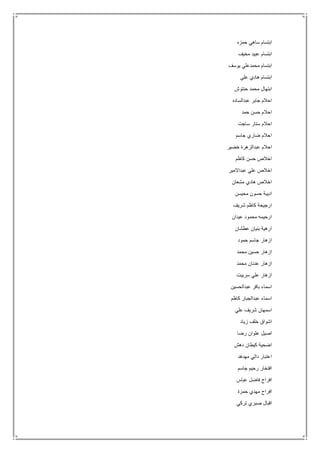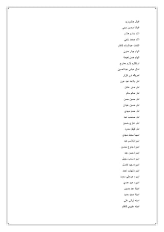 الوثيقة عبارة عن قائمة كبيرة من الأسماء، تشمل أسماء أفراد مختلفة بدون سياق أو معلومات إضافية. الأسماء تحتوي على تركيبات متنوعة تعكس خلفيات وثقافات متعددة. لا توجد تفاصيل تفسيرية أو معلومات حول الموضوع الرئيسي للوثيقة.