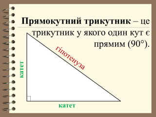 Властивості прямокутного трикутника: