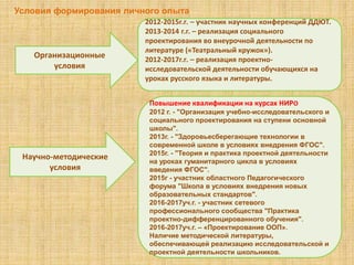 Документ описывает методический семинар по реализации проектно-исследовательской деятельности в обучении русскому языку и литературе в Ждановской средней школе. Основное внимание уделяется формированию проектной компетенции учащихся и созданию условий для их научно-исследовательской деятельности в урочной и внеурочной форме. Также представляются достижения и результаты работы учащихся в рамках исследовательских проектов и конкурсах.