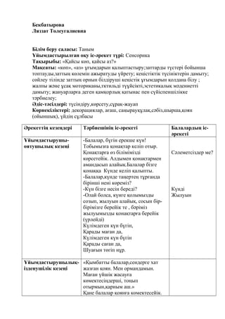 Әрекеттің кезеңдері Тәрбиешінің іс-әрекеті Балалардың іс-