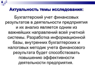 Документ анализирует бухгалтерский учет финансовых результатов в производственном предприятии ООО 'Наш город' и предлагает методы повышения эффективности использования финансовых результатов. Исследуются теоретические аспекты, методики учета и рассмотрены бюджеты, необходимыми для управления затратами и планирования. В заключении представлены рекомендации по выбору новых поставщиков для снижения расходов и увеличения валового дохода.