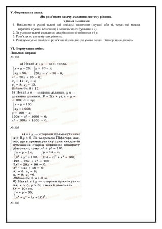 задач. Після чого формулюється мета уроку: вивчити схему розв'язування задач складанням систем