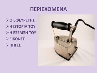 •Το σίδερο είναι μια οικιακή συσκευή που χρησιμοποιείται για να
