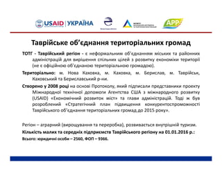 ТОТГ ‐Таврійський регіон ‐ є неформальним об’єднанням міських та районних