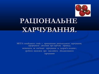 раціональне харчування. мета ознайомити учнів з принципами раці