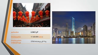 ჩინეთის უმშვენიერესი და მაღალგანვითარებული ქალაქი შანხაი. ადგილი სადაც ცხოვრებაზე ყველა ოცნებობს. ამ პრეზენტაციაში წარმოგიდგენთ მოკლე მიმოხილვას ქალაქის შესახებ. ასევე მისი წამოშობისა და განვითარების ისტორიას.