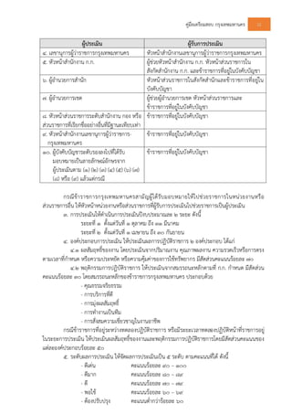 ในสหรัฐอเมริกาไมมีโทษสถานใดสําหรับขาราชการที่กระทําผิด ก. ตักเตือน ข. ใหพักงาน ค. ปลดออก ง. ตัดเงินเดือน 38. สําหรับขาราชการไทย หามใชวิธีลงโทษแบบใด ก. การตัดเงินเดือน ข. การลดขั้นเงินเดือน ค. การยายตําแหนง ง. การไลออก 39. ขอใดถือวาเปนการกระทําผิดวินัย ก. มาทํางานสายเนือง ๆ ข. ลากิจบอย ๆ ค. ลาปวยไปทําธุระสวนตัว ง. ลาปวยโดยไมสงใบรับรองแพทย 40. การลากิจสวนตัวตองปฏิบัติอยางไร ก. สงใบลากอนวันลา ข. สงใบลาหลังวันลา ค. แจงดวยวาจากอนแลวสงใบลาทีหลัง ง. ถูกทุกขอ 41. วินัยของขาราชการประเภทใดเขมงวดที่สุด ก. ขาราชการพลเรือน ข. ขาราชการตํารวจ ค. ขาราชการทหาร ง. ขาราชการตุลาการ 42. ขอใดเปนการกระทําผิดวินัยของขาราชการ ก. ไปสอนพิเศษตามบาน ข. ตั้งฟารมเลี้ยงกุง ค. ขับเท็กซี่เวลากลางคืน ง. เปนกรรมการหรือผูจัดการบริษัท 43. หนวยงานใดทําหนาที่เกี่ยวกับการรองทุกข ก. ผูบริหาร ข. สหภาพแรงงาน ค. ที่ปรึกษฝายงานบุคคล ง. ถูกทุกขอ 44. กฎหมายคุมครองแรงงานกําหนดใหนายจางที่มีลูกจางตั้งแตกี่คนขึ้นไปตองจดทะเบียนไวกับกรมแรงงาน ก. 10 คน ข. 20 คน ค. 50 คน ง. 100 คน 45. กฎหมายวาดวยการคุมครองแรงงานเกี่ยวกับเรื่องอะไร ก. ขั้นตอนในการเจรจาตอรอง ข. การระงับขอพิพาทแรงงาน ค. การตั้งกติกาของการจัดตั้งองคการ ง. ขอกําหนดที่นายจางตองปฏิบัติตอลูกจาง 46. กฎหมายวาดวยการแรงงานสัมพันธเกี่ยวกับเรื่องอะไร ก. การกําหนดกติกาของการจัดตั้งองคการ ข. การกําหนดคาจางแรงงาน ค. การกําหนดขอตอรอง ง. ถูกทุกขอ 47. ขอใดจัดวาเปนธรรมเนียมปฏิบัติ ก. การตอรองระหวางนายจางกับลูกจาง ข. การกําหนดอัตราจางขั้นต่ําสุด ค. การจัดงานรื่นเริงประจําป ง. ถูกทุกขอ 48. ในกิจการที่ไมมีสหภาพแรงงานควรปฏิบัติอยางไร ก. ใหมีธรรมเนียมปฏิบัติ ข. ใหมีสัญญาการจาง ค. ใหมีหัวหนาลูกจาง ง. ถูกทุกขอ 49. คณะกรรมการลูกจางในประเทศไทยกําเนิดขึ้นมาครั้งแรกเมื่อ พ.ศ. ใด ก. 2515 ข. 2516 ค. 2517 ง. 2518