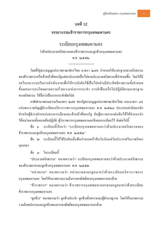 ขาราชการพลเรือนมีสิทธิลากิจสวนตัวไดไมเกินกี่วัน ก. 30 วัน ข. 45 วัน ค. 60 วัน ง. 90 วัน 25. การลาพักผอนประจําปสําหรับขาราชการพลเรือนมีสิทธิลาไดปหนึ่งกี่วัน ก. 5 วัน ข. 10 วัน ค. 15 วัน ง. 30 วัน 26. ขาราชการชายมีสิทธิลาอุปสมบทไดไมเกินกี่วัน ก. 60 วัน ข. 90 วัน ค. 120 วัน ง. 150 วัน 27. การลาไปตางประเทศที่มีอาณาเขตติดตอกับประเทศไทยมีสิทธิลาไดกี่วัน ก. ไมเกิน 30 วัน ข. ไมเกิน 45 วัน ค. ไมเกิน 60 วัน ง. ไมเกิน 90 วัน 28. ใครไมมีสิทธิเบิกคารักษาพยาบาล ก. บิดา มารดา ข. บุตร ค. คูสมรส ง. พี่ นอง 29. สถานพยาบาลเอกชนขาราชการจะเบิกคารักษาพยาบาลไดในกรณีใด ก. เปนคนไขใน ข. เปนคนไขประจํา ค. รับการรักษาเกิน 30 วัน ง. ถูกทุกขอ 30. ขาราชการประเภทใดมีสิทธิไดรับคาเชาบาน ก. เปนขาราชการวิสามัญ ข. ผูเริ่มเขารับราชการครั้งแรก ค. เปนคนโสด ง. ไมมีขอถูก 31. การลงโทษทางวินัยไมควรใหเปนไปตามขอใด ก. ทําตามระเบียบแบบแผน ข. ทําตามความเปนจริง ค. ทําโดยพยาบาทหรือโทสะ ง. ทําดวยความสม่ําเสมอ 32. จุดมุงหมายหลักของการลงโทษทางวินัยของขาราชการคือขอใด ก. เพื่อรักษาความสามัคคี ข. เพื่อรักษาความศักดิ์สิทธิ์ของกฎหมาย คง เพื่อสรางขวัญและกําลังใจ ง. เพื่อใหเปนตัวอยางที่ดี 33. ขอใดถือวาเปนการปฏิบัติที่ผิด ก. ผูบังคับบัญชาเขมงวดเกินไป ข. ผูบังคับบัญชาสั่งงานลูกนองกอน ค. ผูบังคับบัญชาปกปดความผิดของลูกนอง ง. ถูกทุกขอ 34. ความผิดครั้งแรกหรือความผิดเล็กนอยผูบังคับบัญชาควรปฏิบัติอยางไร ก. เรียกมาดา ข. เรียกมาตักเตือน ค. เสนอเรื่องตอผูบังคับบัญชาชั้นสูงตอไป ง. เฉย ๆ 35. การลงโทษสถานใดจะกระทําตอขาราชการพลเรือนไมได ก. ภาคทัณฑ ข. ตัดขั้นเงินเดือน ค. ปลดออก ง. กักบริเวณ 36. โทษของขาราชการพลเรือนขอใดจัดวาเปนสถานหนัก ก. ภาคทัณฑ ข. ปลดออก ค. ไลออก ง. ใหออก