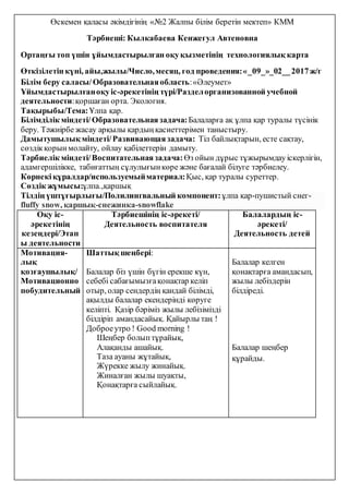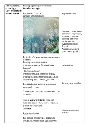 Білімділік міндеті/Образовательнаязадача:Балаларға ақ ұлпа қар туралы түсінік