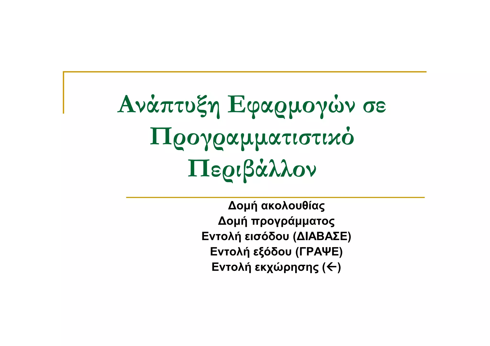 3. Δομή ακολουθίας,Εντολές εισόδου/εξόδου, εκχώρησης 21