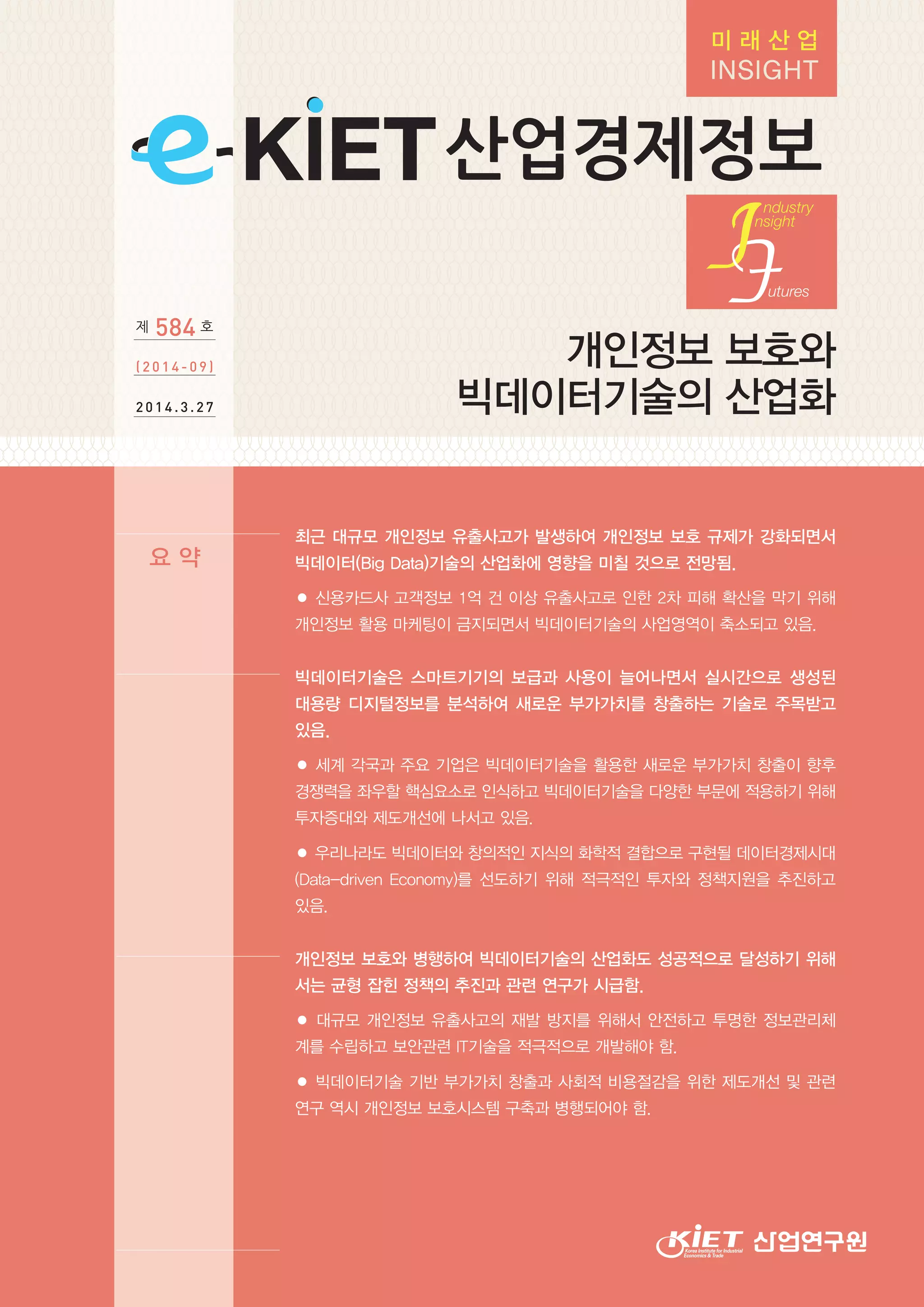 최근 대형화되고 빈번하게 발생하고 있는 개인정보 유출사고가 빅데이터기술을 미래 성장