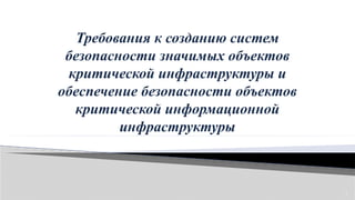 Требования к созданию систем безопасности значимых объектов критической инфраструктуры и обеспечение безопасности объектов критической информационной инфраструктуры