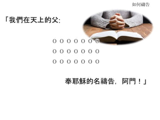 如何禱告 「我們在天上的父: ooooooo ooooooo ooooooo 奉耶穌的名禱告,阿門!」