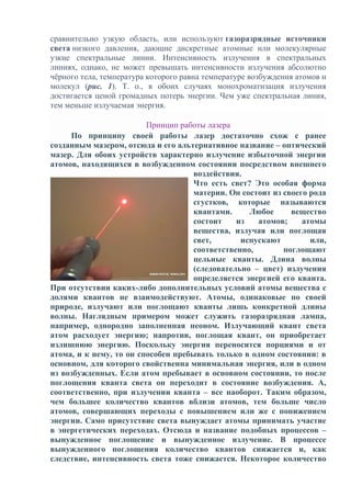 Лазеры являются источниками электромагнитного излучения, обладающими уникальными свойствами, такими как когерентность и высокая направленность. Они функционируют на основе вынужденного излучения атомов и могут быть различных типов: газовые, полупроводниковые, жидкостные и твердотельные, каждый из которых имеет свои преимущества и недостатки. Лазеры находят широкое применение в научных и технических областях благодаря своей высокой мощности и специфическим характеристикам излучения.