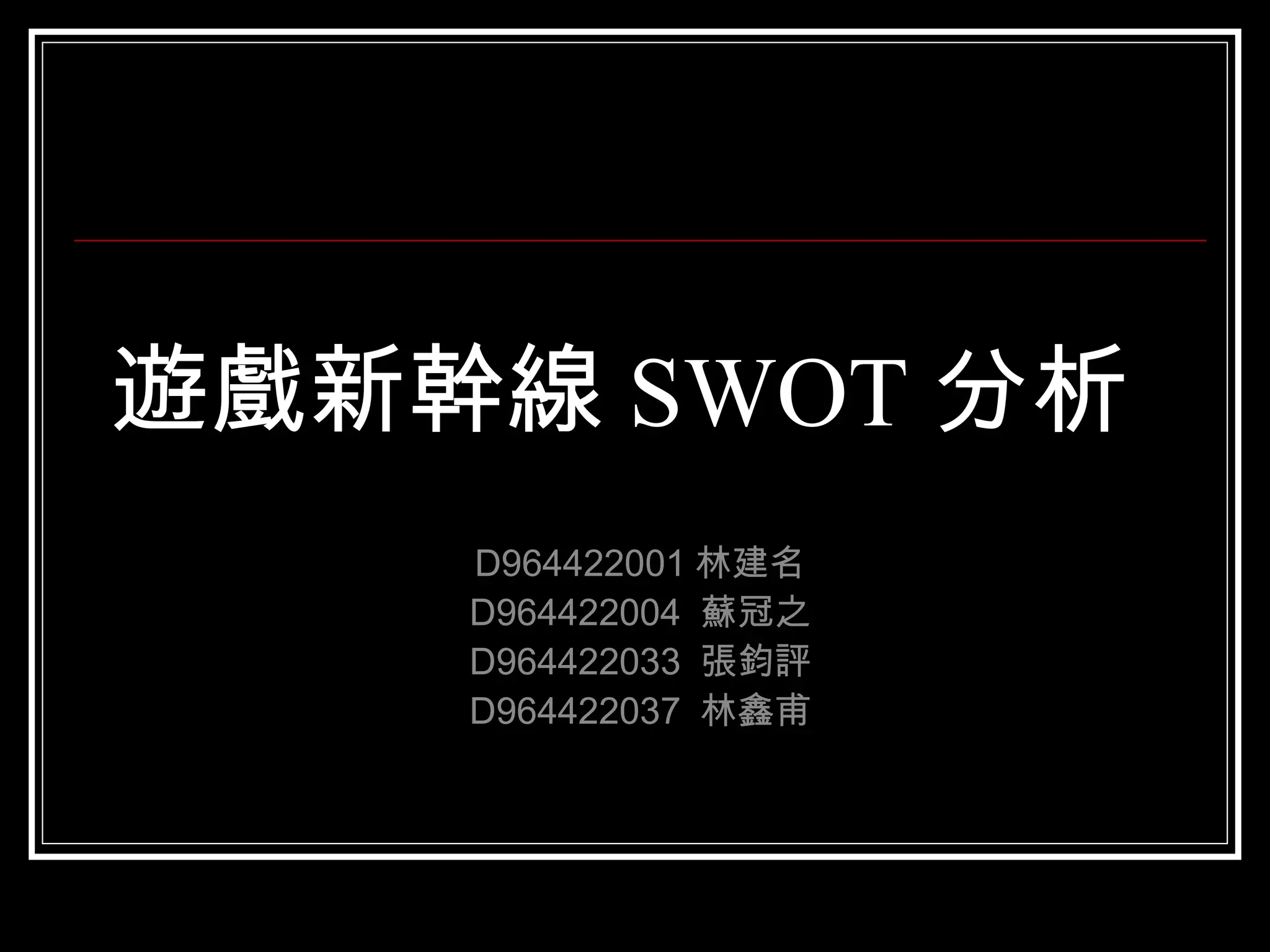 遊戲新幹線是智冠集團的子公司,擁有多種遊戲代理,且營收高。面對需要支付高額代理金的弱勢,遊戲新幹線積極向中國市場拓展,以應對市場機會。然而,該市場的競爭與高成本也帶來威脅。