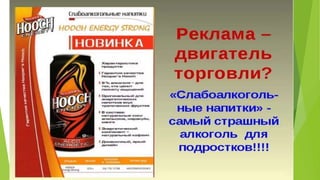 Документ обсуждает вред энергетических напитков, акцентируя внимание на их негативном влиянии на здоровье. Презентация разработана педагогом-психологом Карпушиной Т.В. для повышения осведомленности о потенциальных рисках употребления этих напитков.