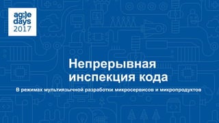 Документ описывает непрерывную инспекцию кода в мультиязычной разработке микросервисов, акцентируя внимание на автоматическом анализе кода с помощью SonarQube и интеграции CI/CD. Автор подчеркивает важность высокого качества кода и автоматизации процессов для уменьшения затрат на ручное ревью. Основная цель заключается в том, чтобы команда больше не использовала недостаток знаний в языке программирования как оправдание ошибок в коде.