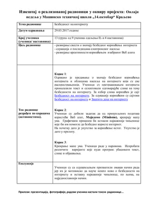 Безбедност на интернету. За едукацију коришћени су сајтови