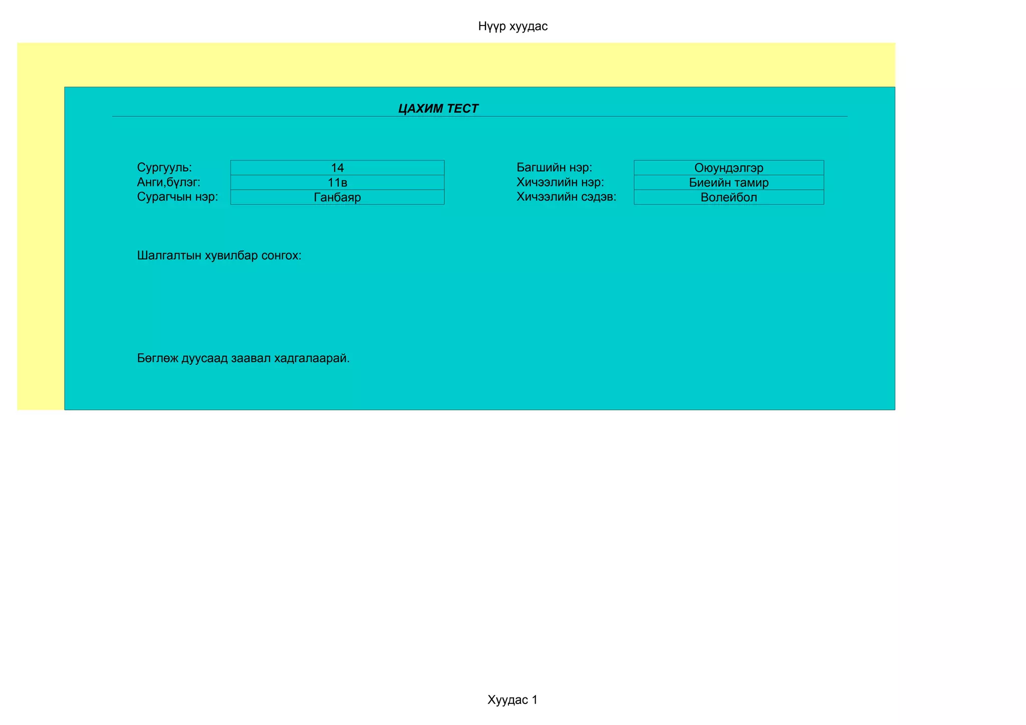 Анги,бүлэг: 11в Хичээлийн нэр: Биеийн тамир