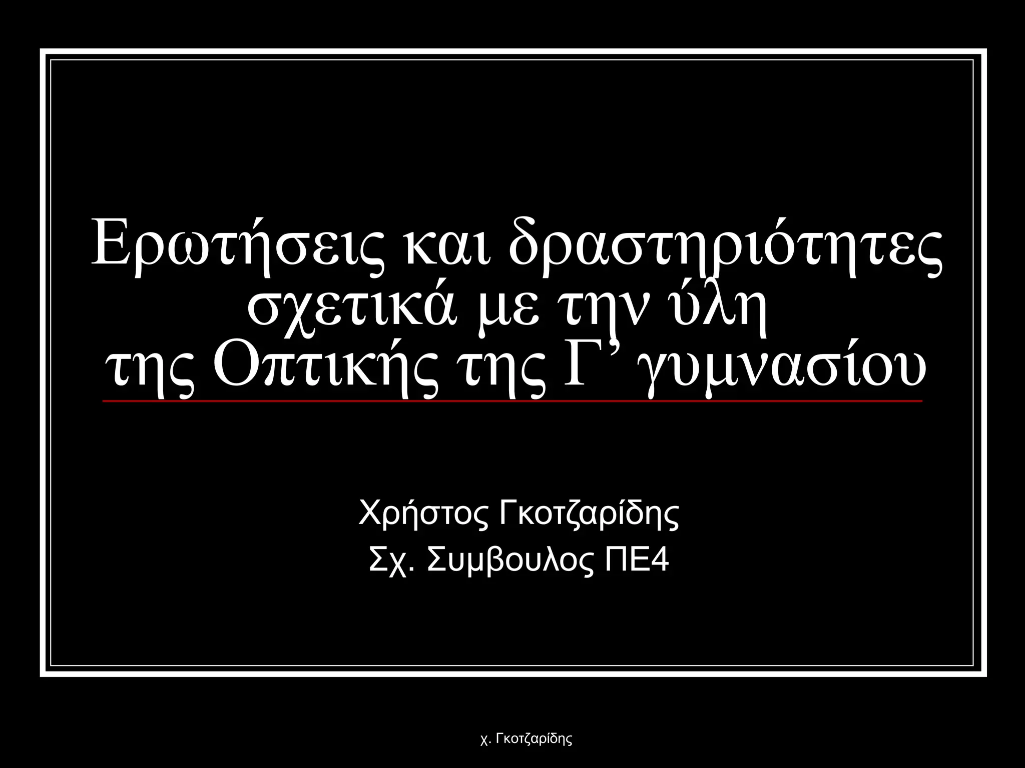 Ερωτήσεις και δραστηριότητεςσχετικά με την ύλη της Οπτικής της Γ’ γυμνασίου Χρήστος Γκοτζαρίδης Σχ. Συμβουλος ΠΕ4 χ. Γκοτζαρίδης
