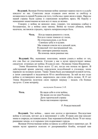 Документ описывает урок мужества, проводимый в музее истории для воспитания патриотизма у молодежи через примеры героизма участников Великой Отечественной войны. В ходе урока подростки знакомятся с личными историями ветеранов и интерпретацией событий войны, подчеркивается важность связи поколений и сохранения исторической памяти. Также акцентируется на необходимости воспитывать любовь к родине и уважение к ее истории.