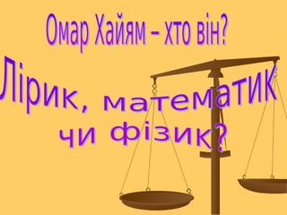 Тематичні питання: Біографія Рубаї Омара Хаяма Спадщина Омара Хаяма – математика Філософські погляди Омара Хаяма Відкриття в астрономії