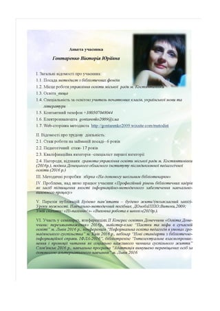 майстерності бібліотекарів загальноосвітніх навчальних закладів, а саме: