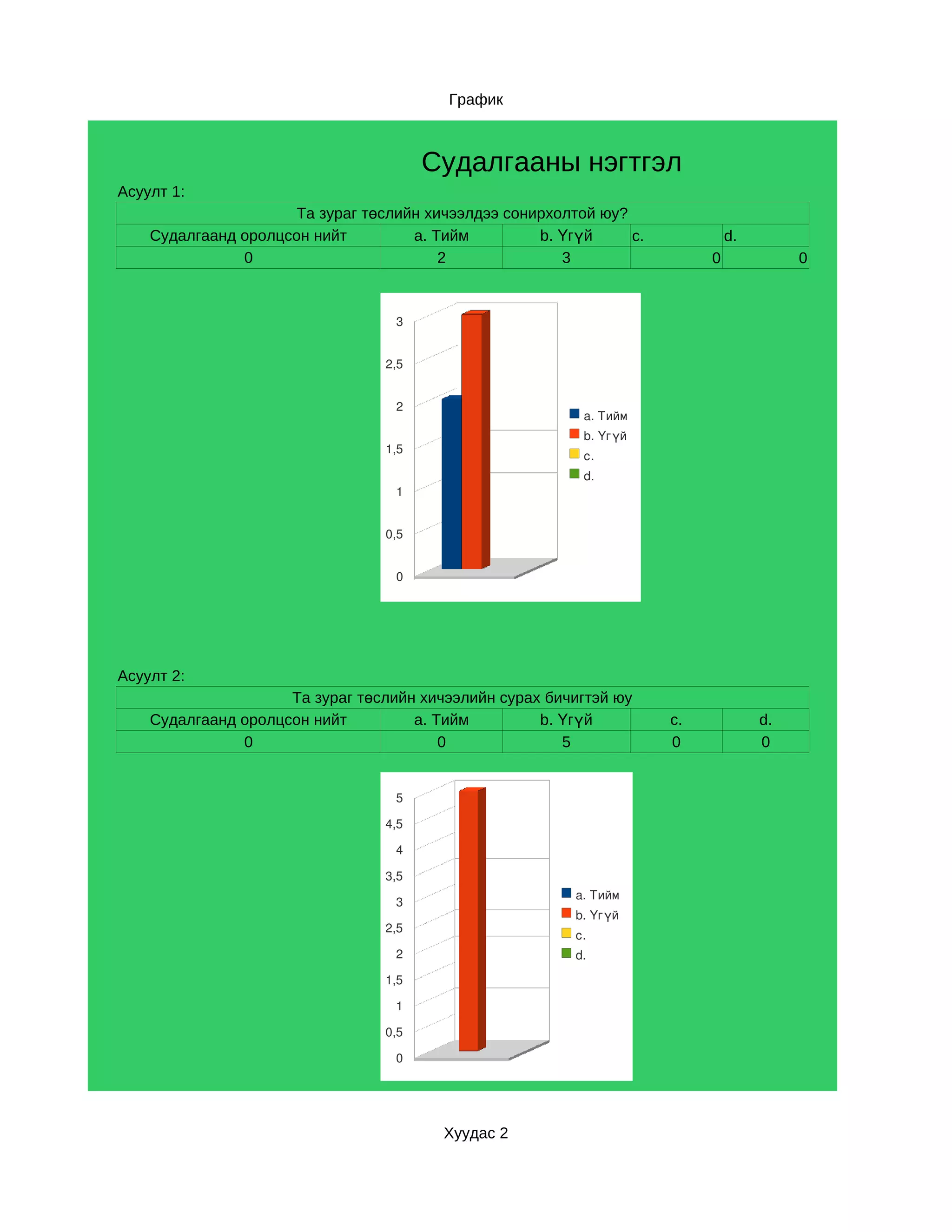 a. Тийм b. Үгүй c. d. Хариулт b
