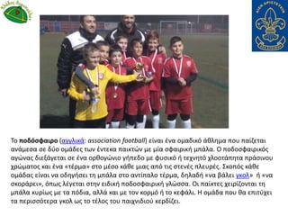 Το ποδόσφαιρο (αγγλικά:association football) είναι ένα ομαδικό άθλημα που παίζεται