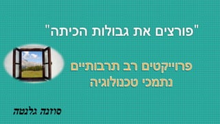 בהרצאה שלי היום אני אספר לכם על הדרך שעשיתי עד היום ואתמקד בשיתוף מודל לפרוייקטים מהסוג הזה: