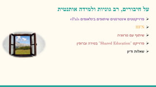 פרוייקט רב תרבותי שניהלתי ועיצבתי HFN ושחיבר בין תלמידים ערבים ויהודים ואתמקד בו לרוב