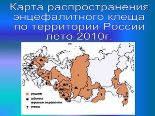 Документ описывает опасность клещевого энцефалита, болезни, вызываемой вирусом, который передается через укусы клещей. С приходом весны увеличивается риск заражения, так как люди больше посещают лесные зоны, забывая о мерах предосторожности. Рекомендуются профилактические меры, такие как вакцинация и использование репеллентов, а также советы по безопасному поведению на природе.
