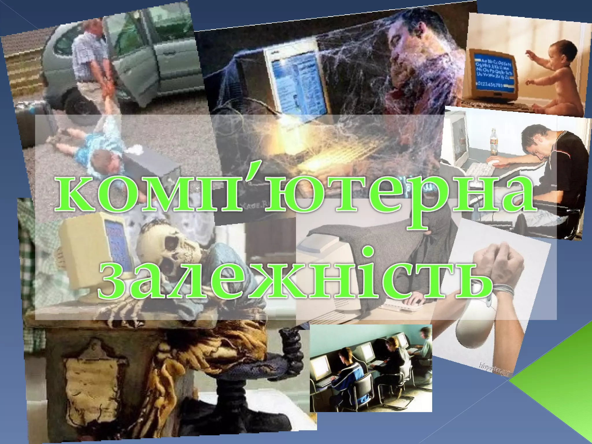 Про алкогольну, наркотичнузалежність часто пишуть практично всі засоби масової інформації. А ось про комп’ютерну згадують набагато рідше. Але вона існує. Особливо серед підлітків, які проводять майже весь свій вільний час у віртуальному світі, нехтуючи навчанням, друзями, здоров’ям. Можна стверджувати, що наприкінці XX ст. виникла і поширилася нова форма залежності — комп’ютерна .