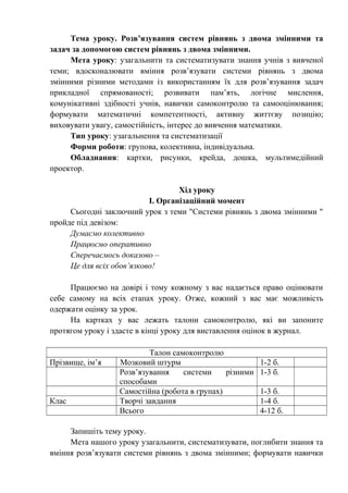 Сьогодні заключний урок з теми "Системи рівнянь з двома змінними "