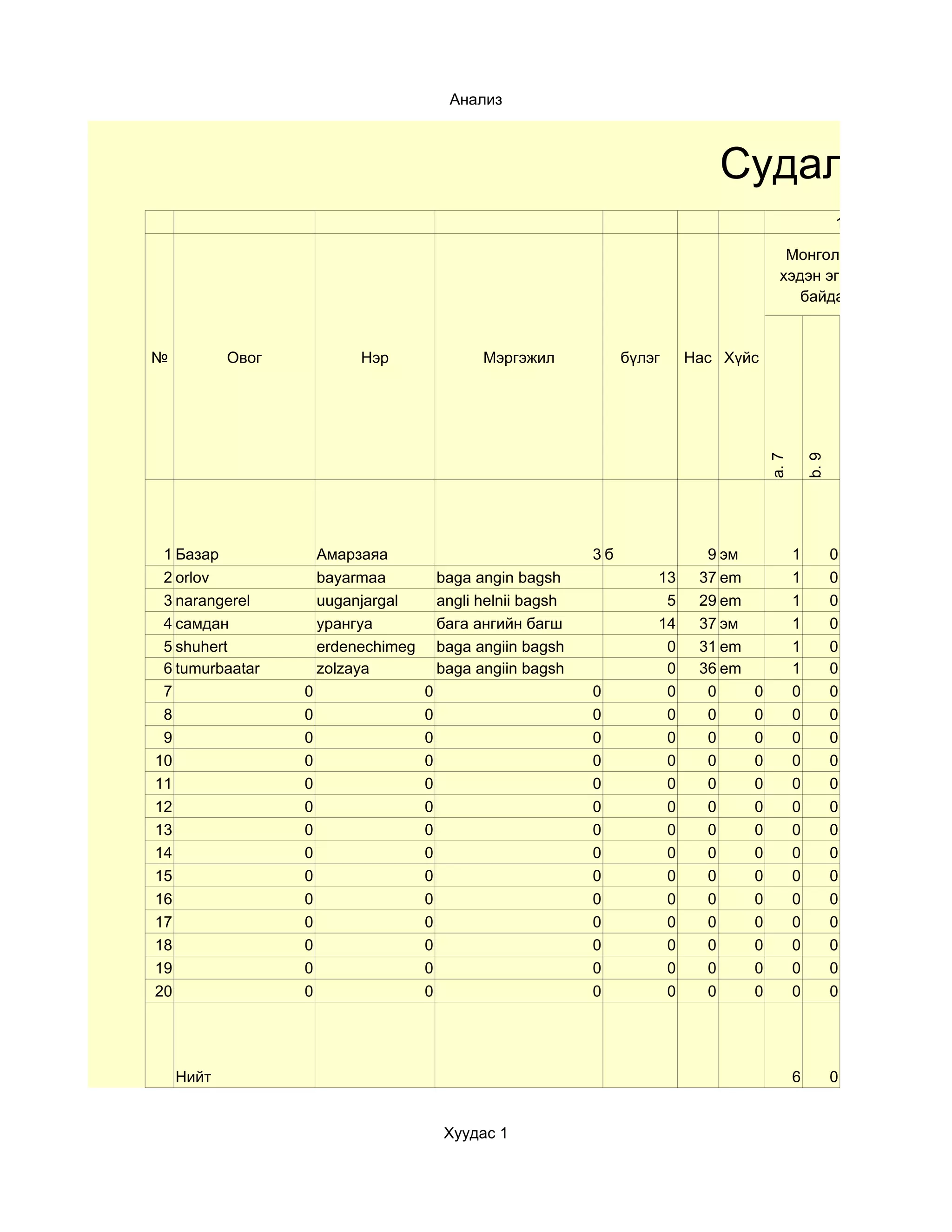 Хүснэгтэн мэдээлэл боловсруулах OpenOffice.org Speadsheet програм дээр дүнгийн хүснэгт гэх мэт су