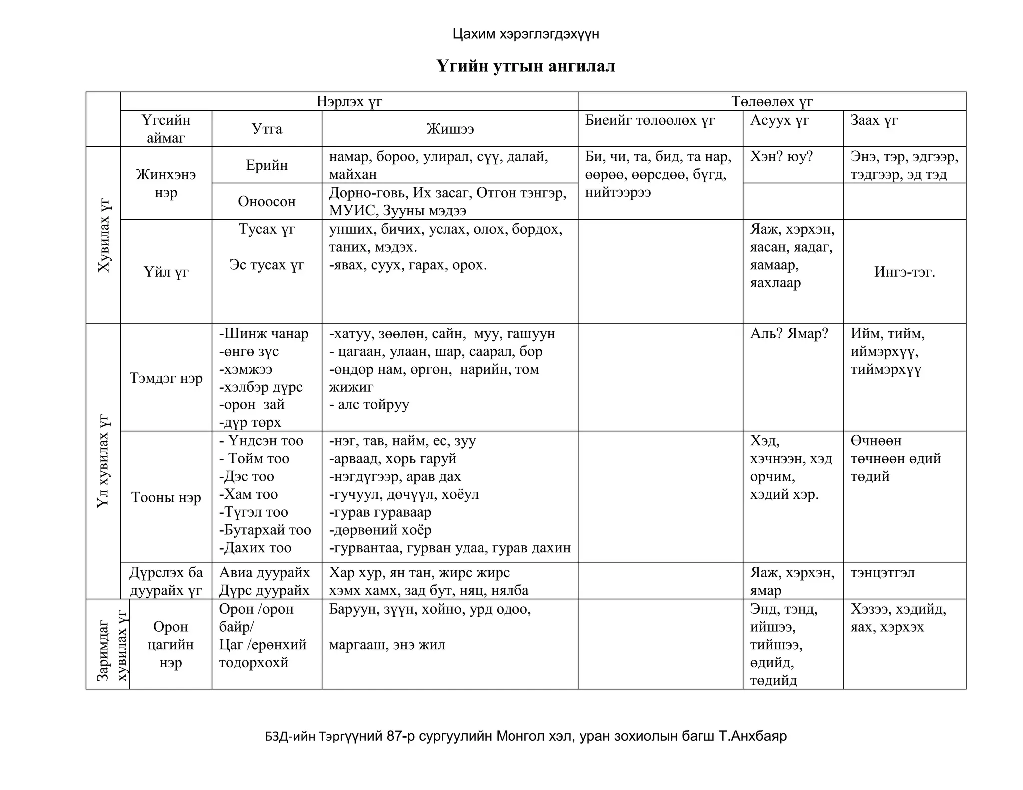 Үгсийн Биеийг төлөөлөх үг Асуух үг Заах үг