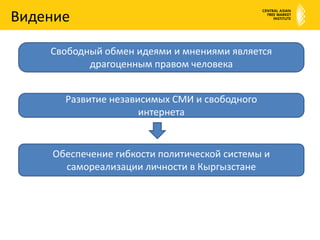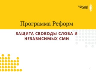 Документ описывает программу реформ, направленную на защиту свободы слова и независимых СМИ в Кыргызстане, подчеркивая важность свободного обмена идеями. Основные проблемы включают административные барьеры для СМИ, отсутствие защиты для журналистов и политическую зависимость от государственного финансирования. Для решения этих вопросов предлагается отменить регистрацию СМИ, создать независимый орган и обеспечить защиту свободы интернета.
