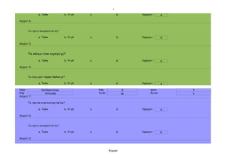 a. Тийм b. Үгүй c. d. a. Тийм b. Үгүй c. d. a. Тийм b. Үгүй c. d. a. Тийм b. Үгүй c. d.
