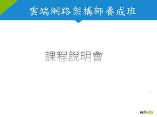 本文件介绍了云端网络架构师培养班的课程和就业前景,预计到2017年全球公共云服务市场规模将达2468亿美元,需求旺盛。课程内容覆盖云计算技术与实践,强调实际操作与问题解决能力,且辅导学员就业率超89%。提供丰富的学习资源与就业辅导,包括设施、活动及行业联系,旨在帮助学员成功进入信息产业。