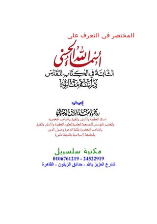 يتناول المستند تعريف أسماء الله الحسنى وأهمية تواجدها في القرآن والسنة، ويشير إلى وجود 99 اسمًا لله وتوافقها مع ما ورد في الكتاب المقدس. كما يوضح أن أسماء الله وكلما كانت مناسبة لاحتياجات الإنسان، وتعمل على رفعته وتقربه من الخالق. يُبرز المستند الحكمة التي تكمن وراء إظهار الأسماء والتأكيد على أهمية العبادة والتواصل مع الله من خلال معرفتها.
