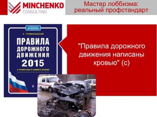 Документ обсуждает структуру и принципы политического лоббизма в России, выделяя важные навыки и компетенции лоббистов. Описываются ключевые игроки и элиты, представляющие различные политические и бизнес-интересы, а также обращения к изменениям в политической среде. Также рассматривается влияние протестной активности и роль неформальных факторов в принятии политических решений.